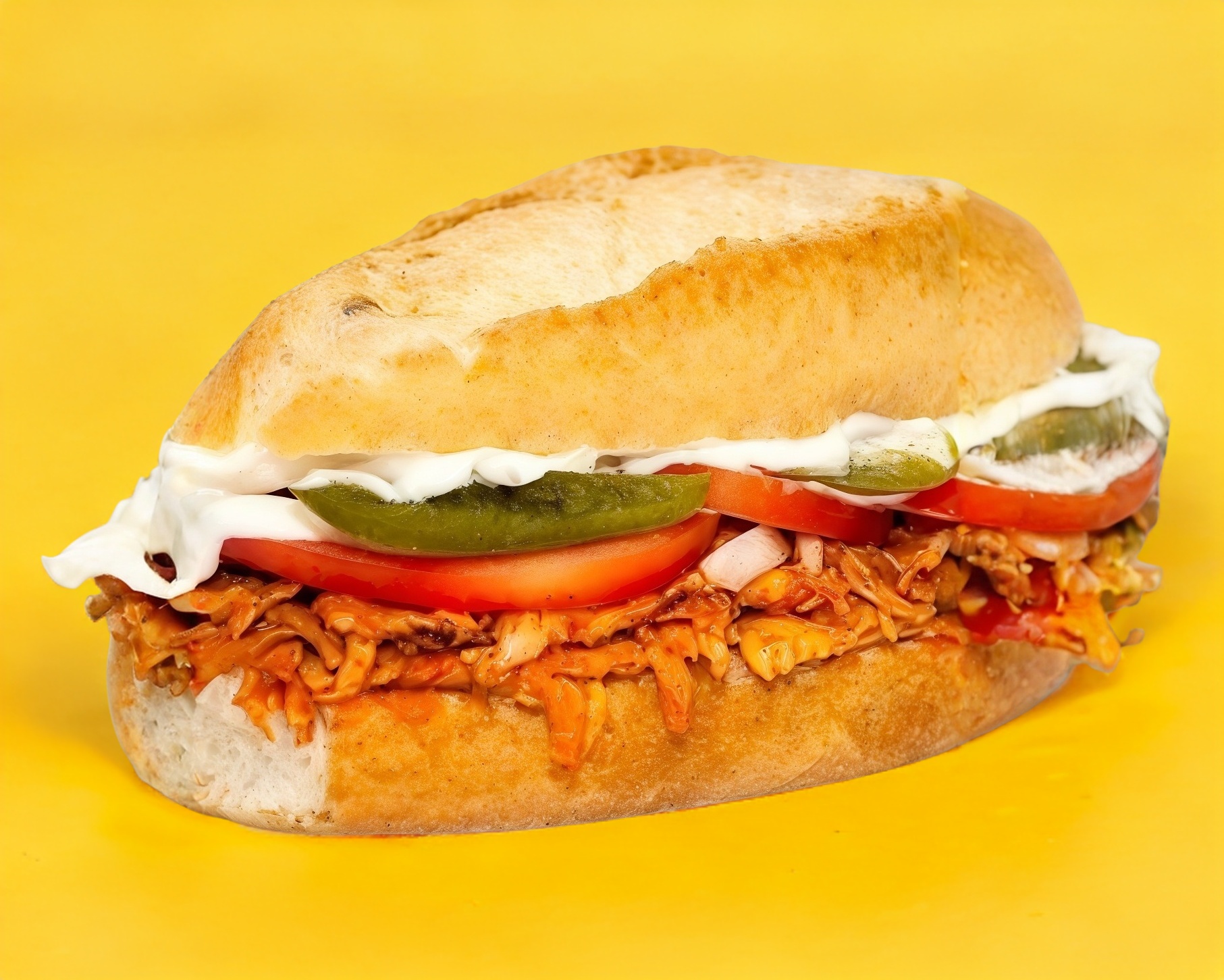 Lonche con pierna adobada, lechuga, jitomate, cebolla, chiles jalapeños y salsa de chipotle (opcional )