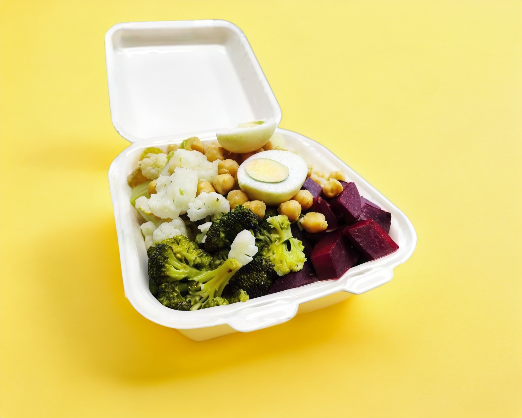 Verduras cocidas con queso y crema en tamaño grande. Papa, chayote, brócoli y coliflor. Plato personal