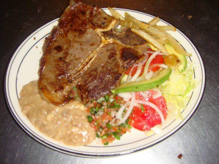 300 gr , ensalada, salsa mexicana frijoles fritos y papas a la francesa