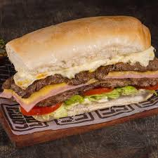 Baguette artesanal (180 g) relleno con dos proteínas a elección (160 g en total), mayonesa, aderezo, lechuga (30 g), zanahoria (30 g), jícama (30 g), morrón y germinado.