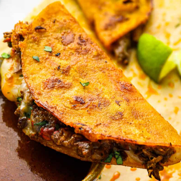 barbacoa en tortilla doble de maiz con verdura y picante aparte