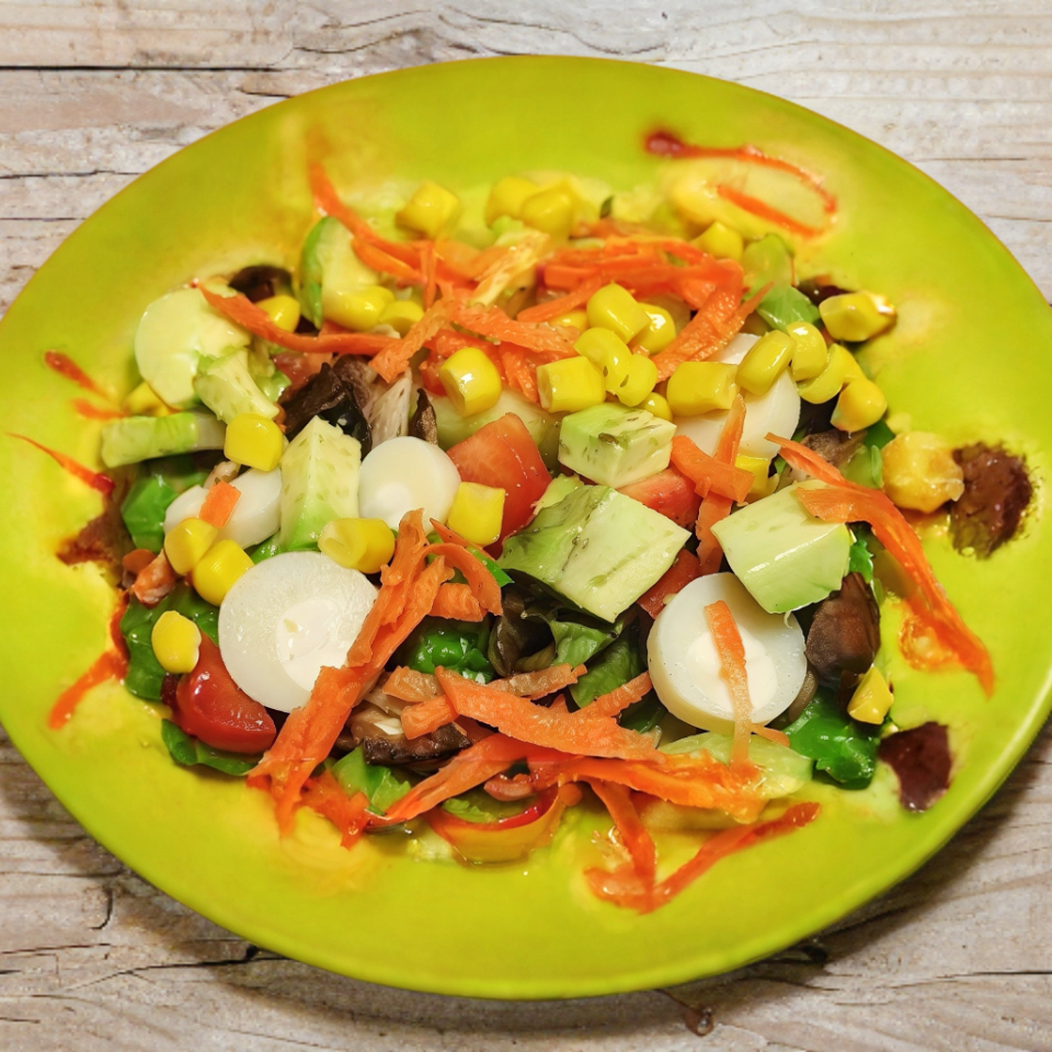 Base de Lechuga, Zanahoria, Pepino, Aguacate y cebolla