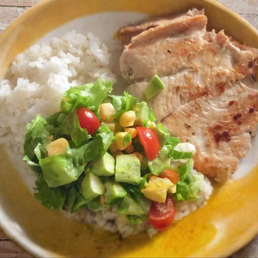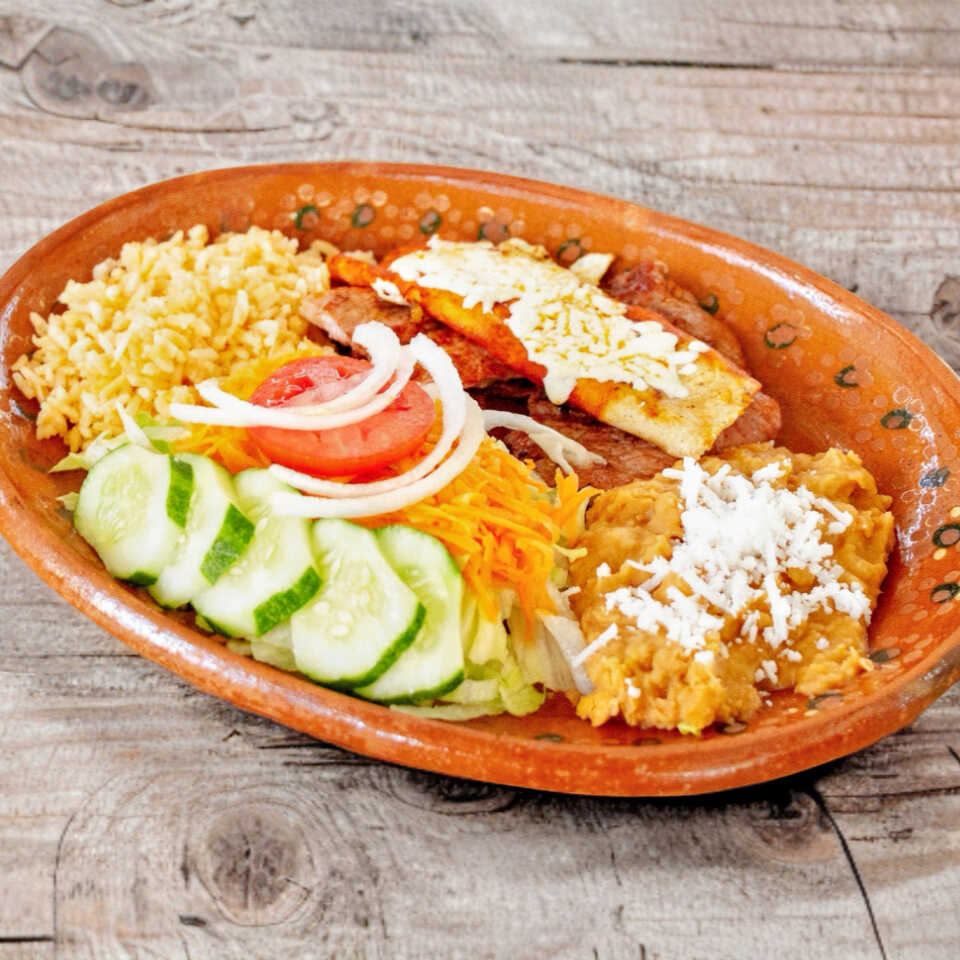 Corte depeinecillo arroz frijoles y ensalada chilito Torrado y cebolla cambray