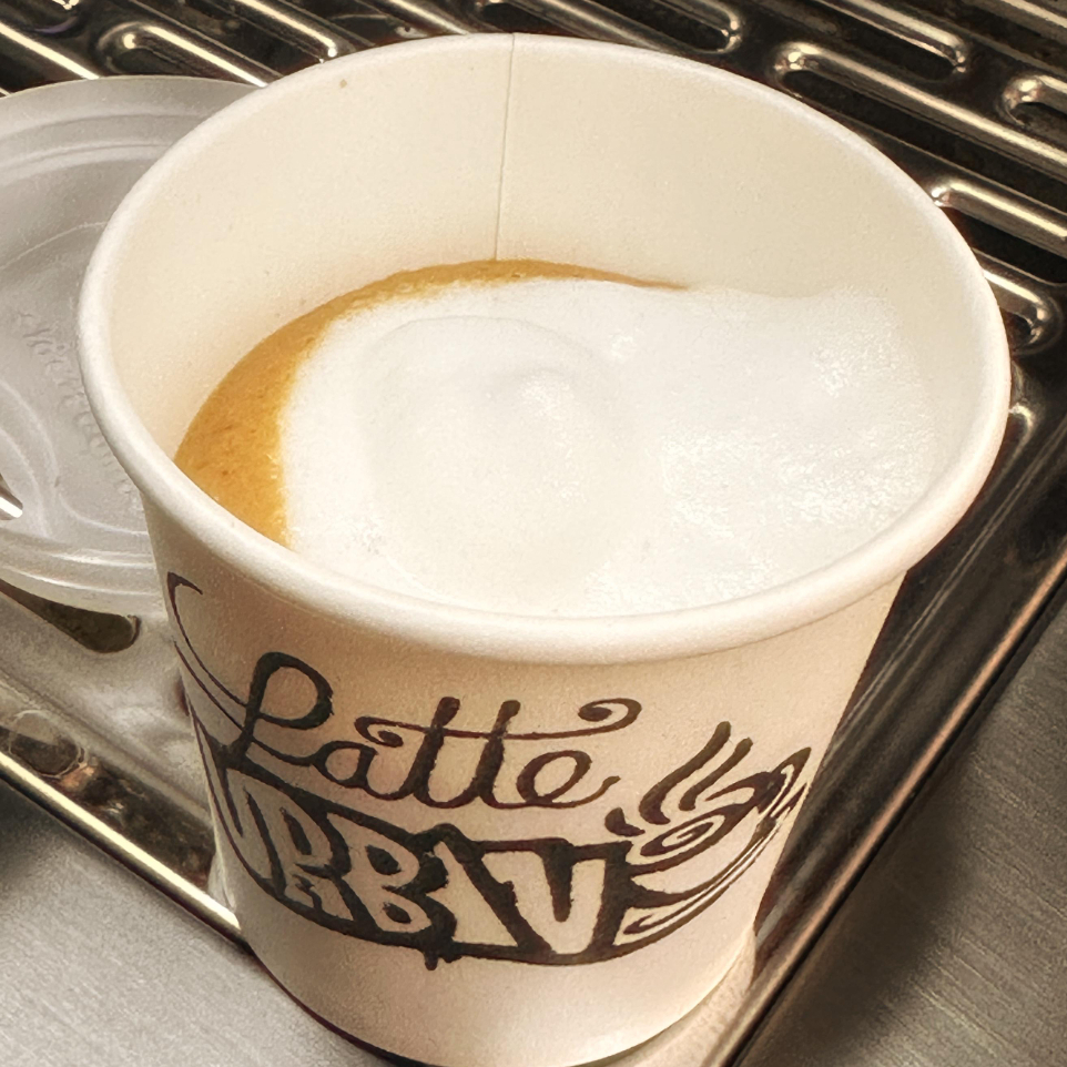 Carga de espresso de 40 ml, con leche texturizada