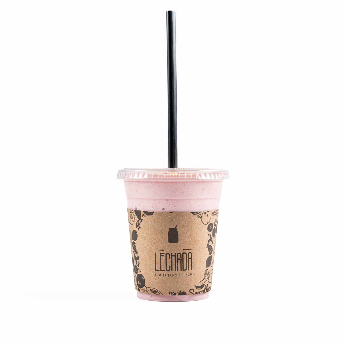 Smoothie de proteína, fresa, plátano, amaranto, avena, leche 350 ml.