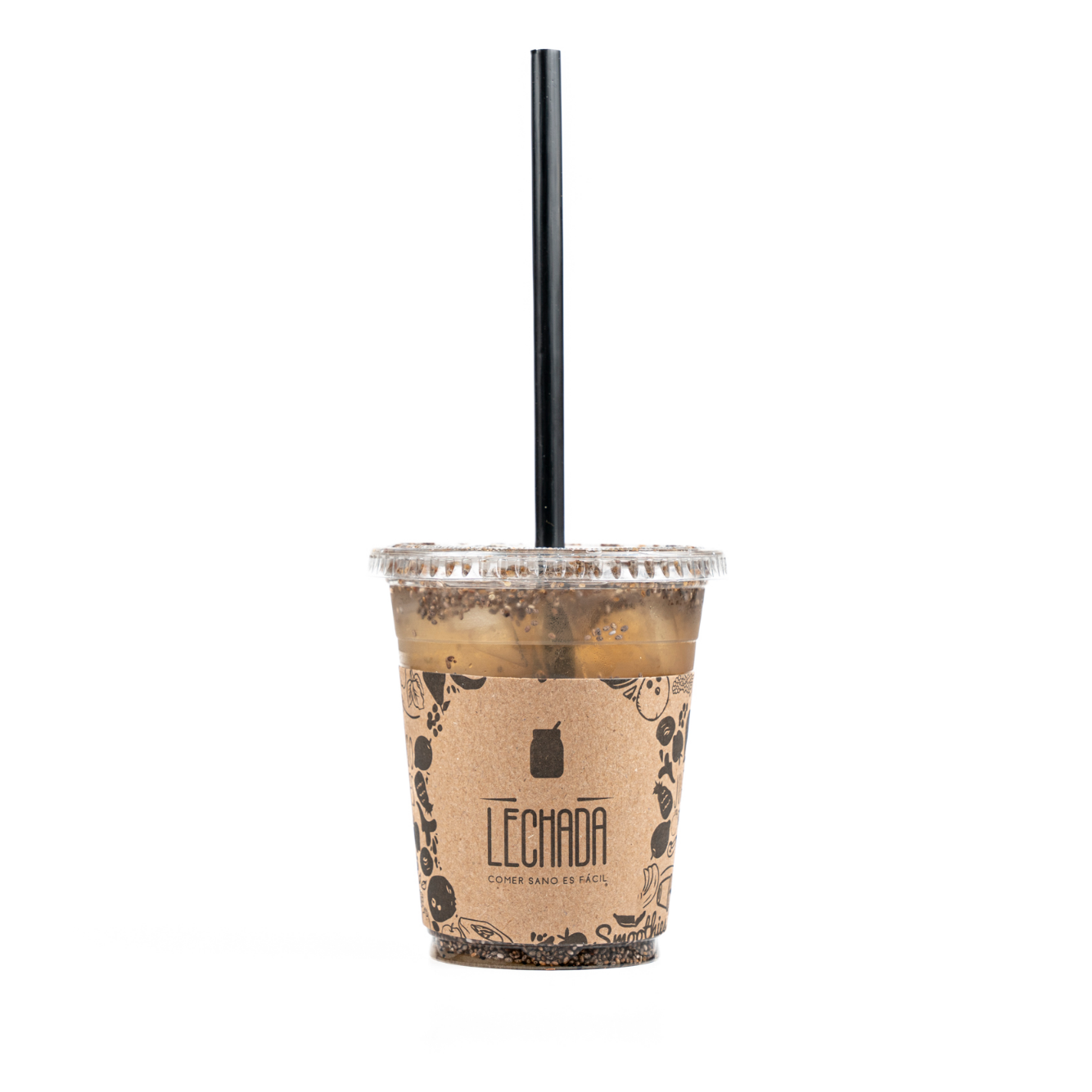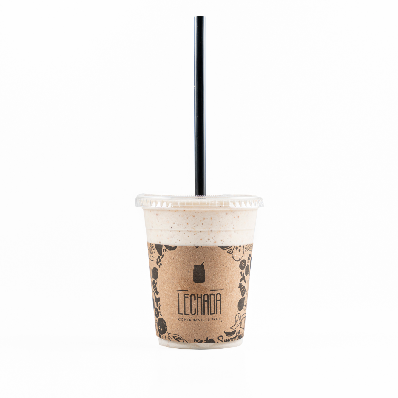 Smoothie con proteína, plátano, crema de cacahuate, café y leche light 350 ml.