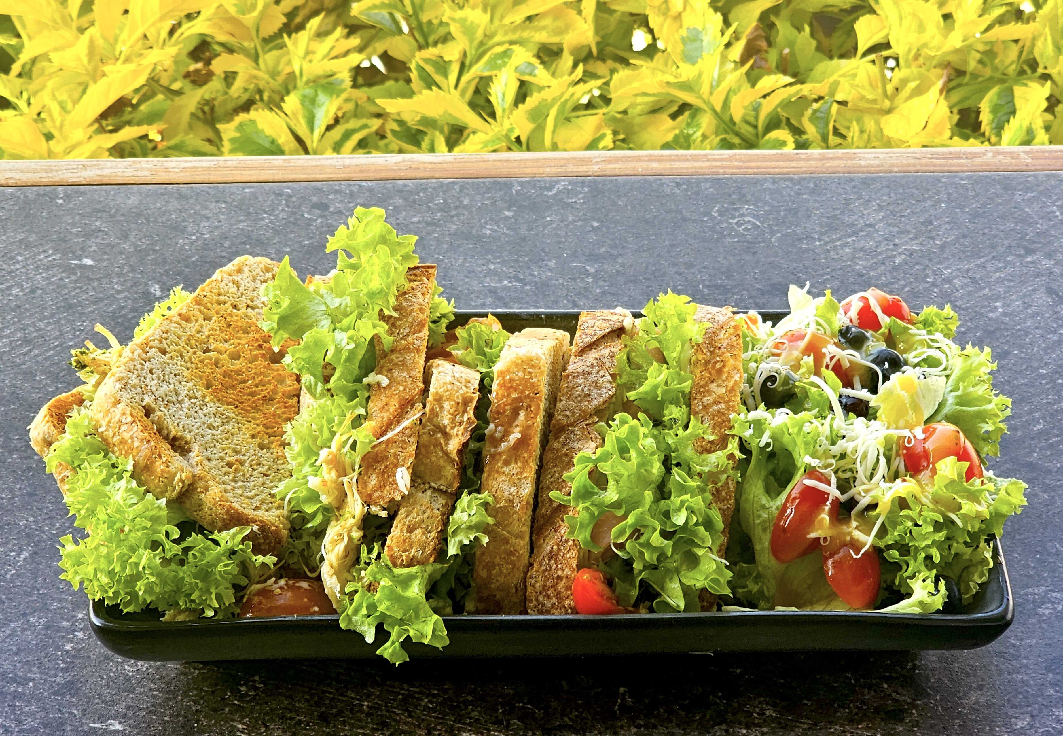Rico panini de jamon, acompañado de ensalada o papas.