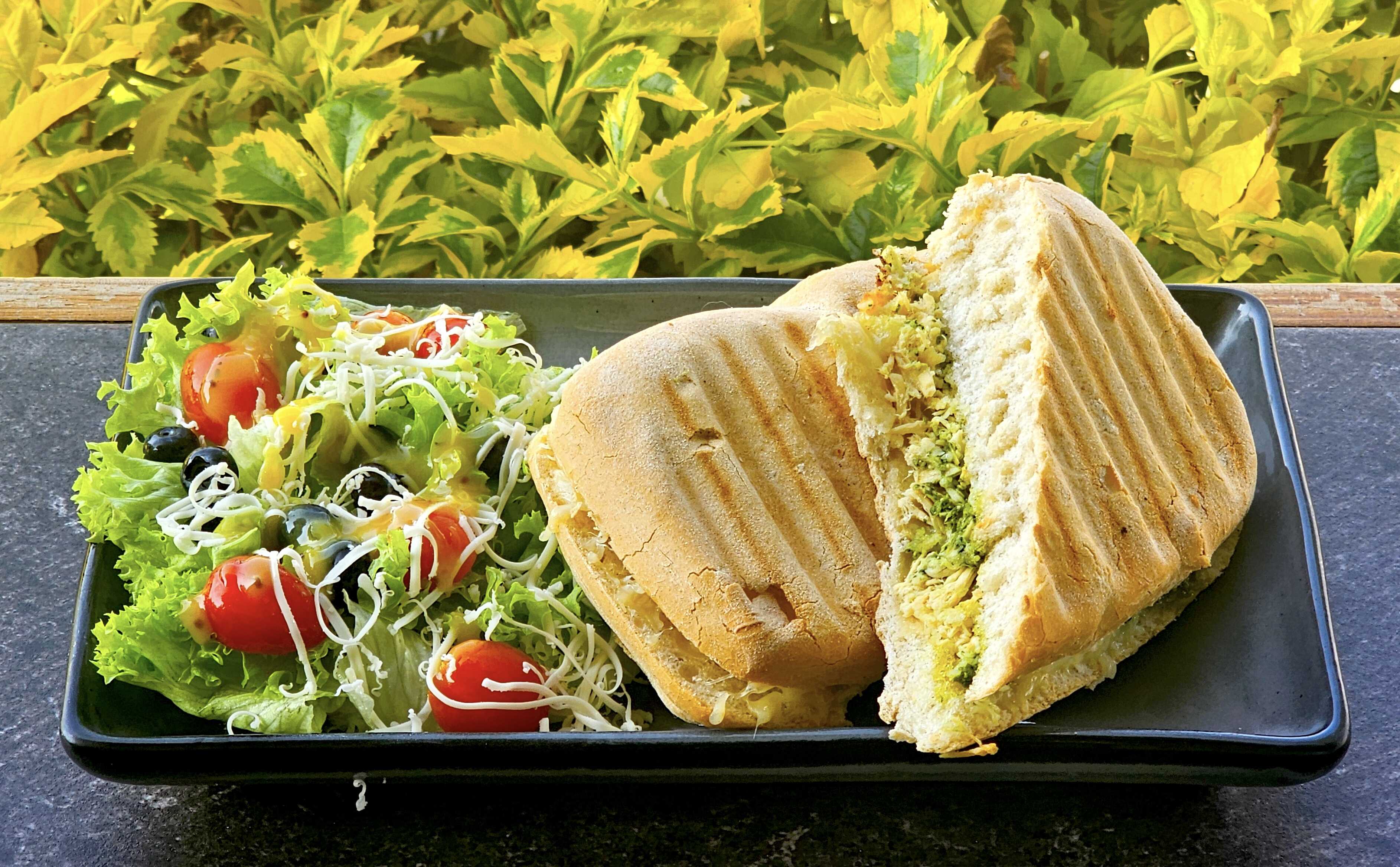Panini de jamon con papas o ensalada y salsa chipotle