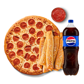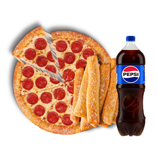 Pizza Grande de Pepperoni y/o Queso + Crazy Bread + Crazy Sauce + Refresco 2LT Pepsi