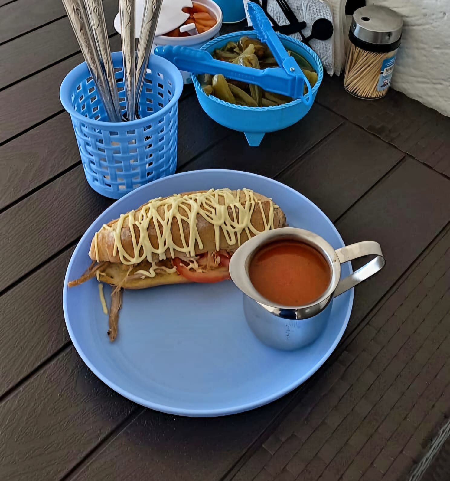Rico lonchecito de pierna bañado, acompañado de rajas.
