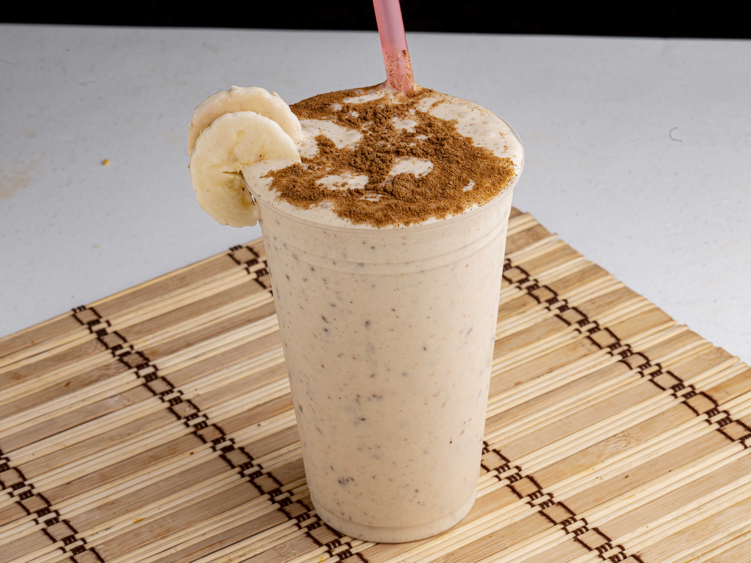 Licuado de medio litro platano con avena, granola, amaranto y pasas