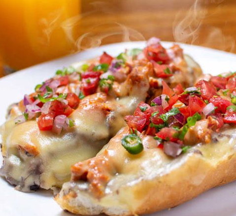 Mollete con frijoles y queso.