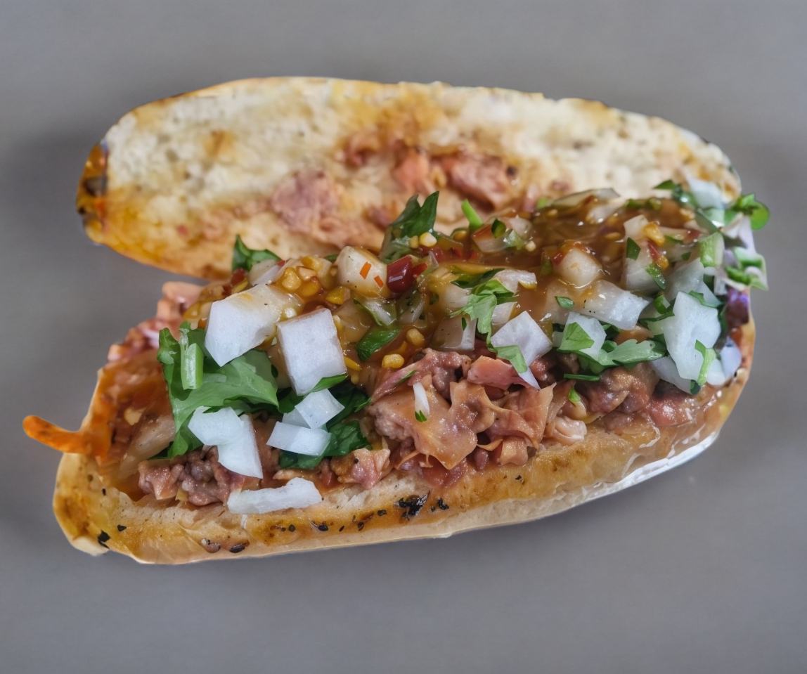 Preparado en bolillo acompañado de cebolla cilantro y chile de tomate