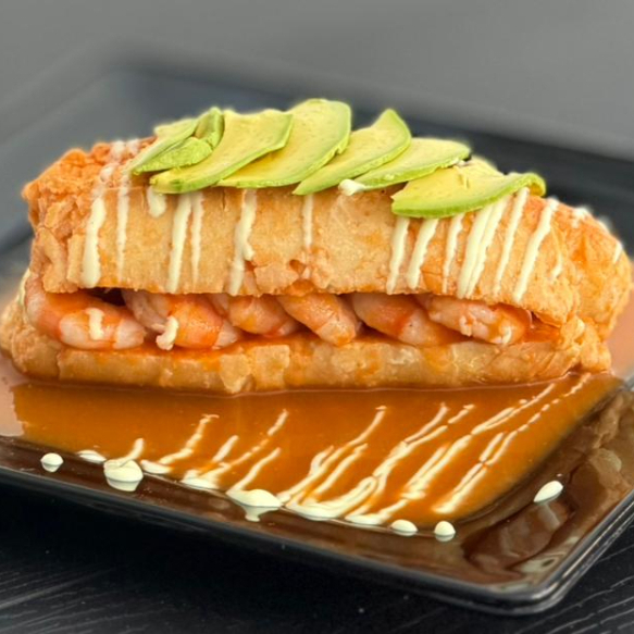 Lonche Bañado de Camaron bañado en una deliciosa salsa con un toque de chipotle