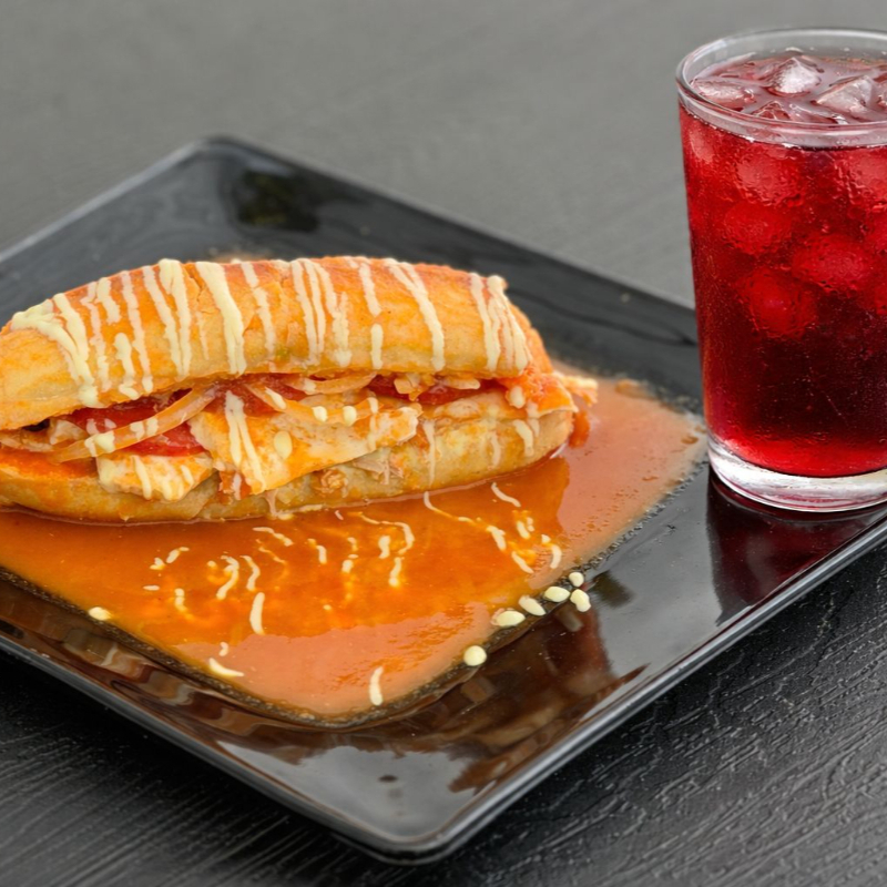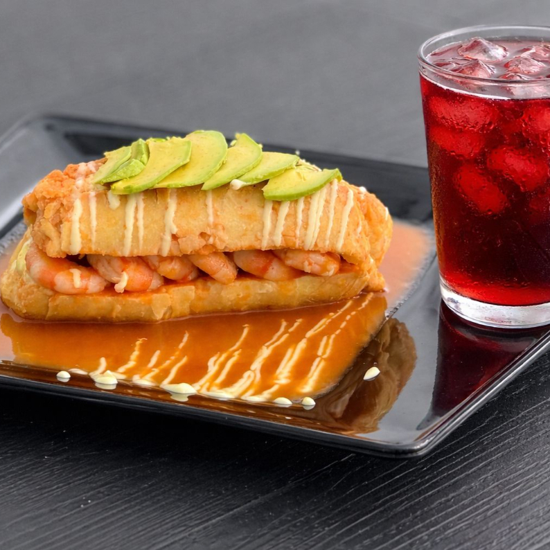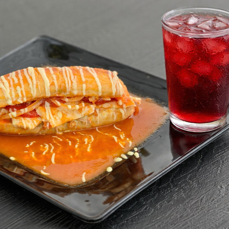 Combo Lonche Bañado de Camarón con Agua de Jamaica