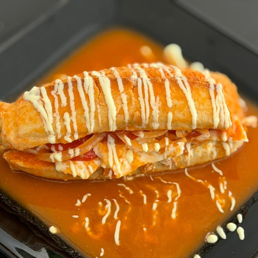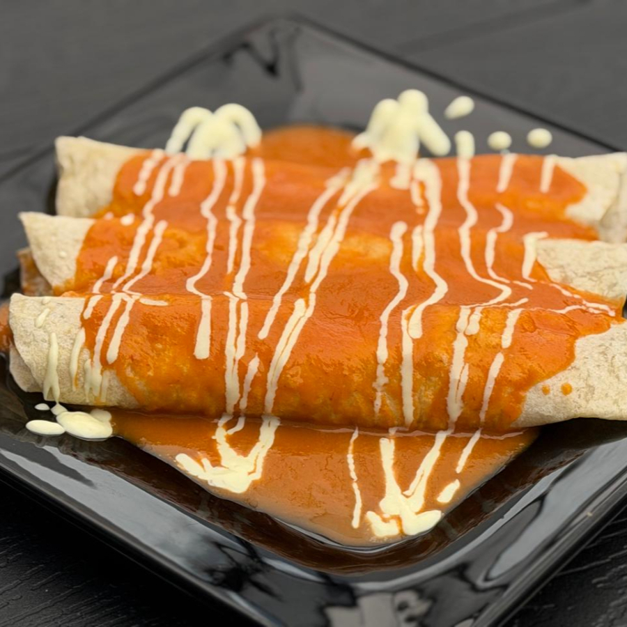 3 burritas de pierna, bañadas en la salsa de la casa con un toque de chipotle