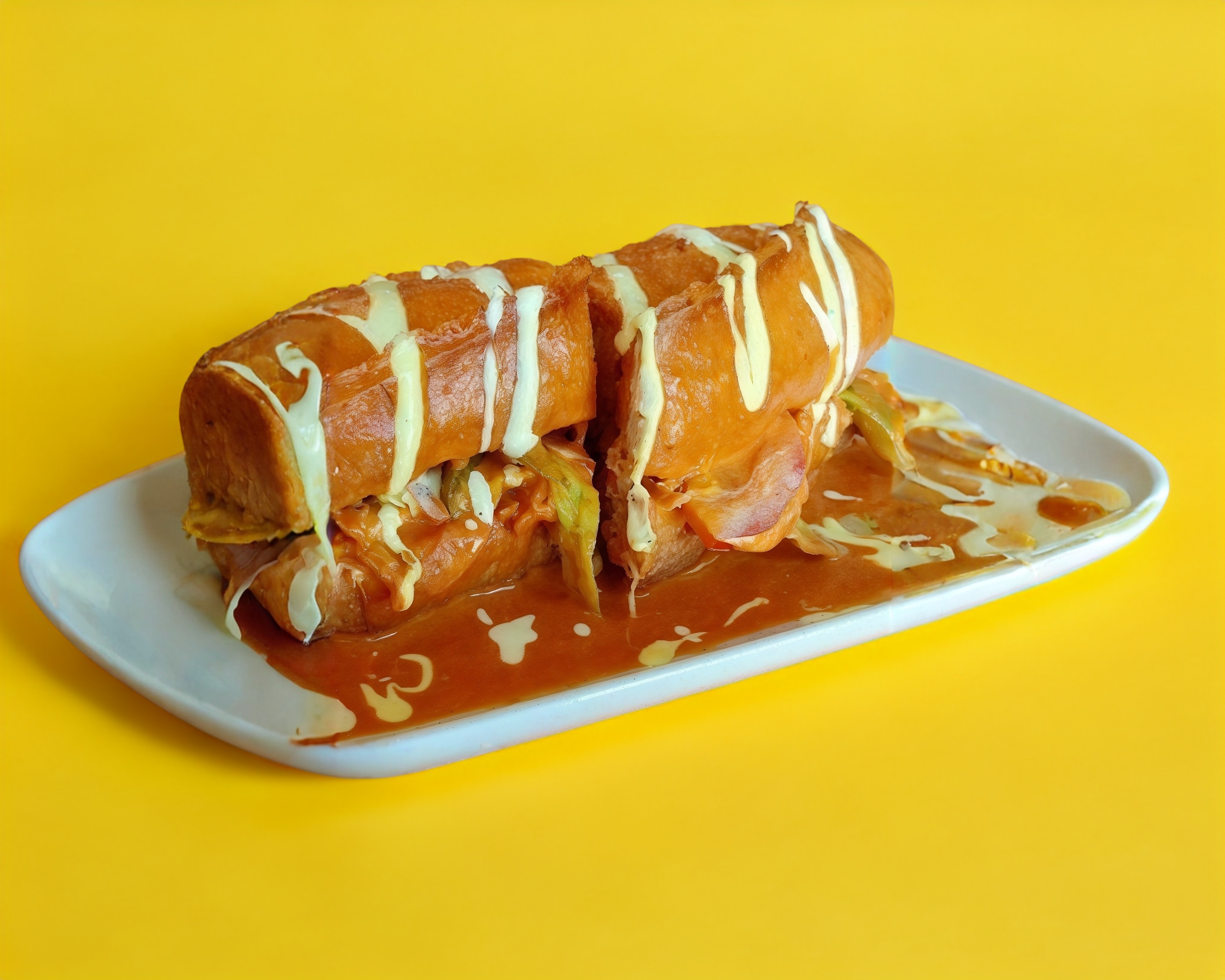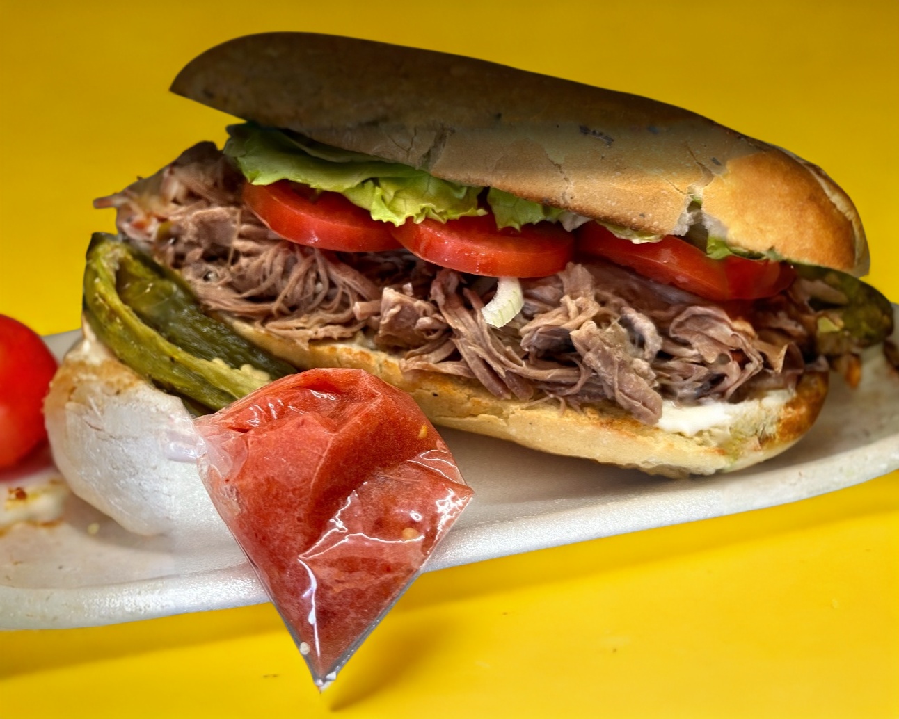 Bolillo fleiman grande bañado con salsa especial, proteína a elegir.