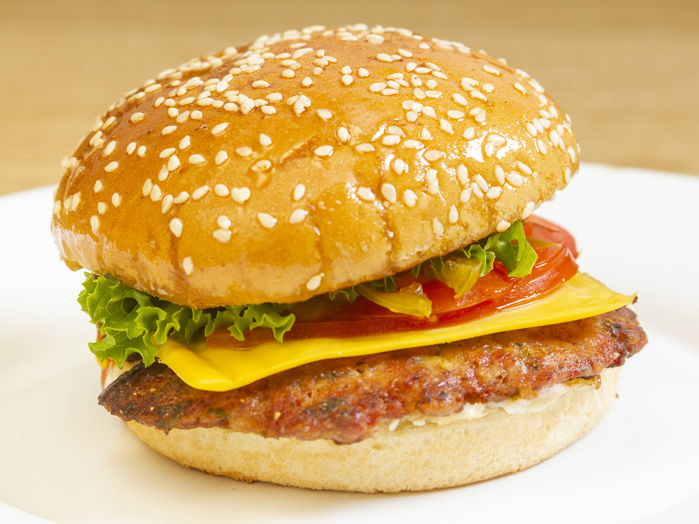 Hamburguesa 100% de res casera, queso, vegetales frescos lechuga, jjitomate, cebolla, chile jalapeño, catsup y mostaza.