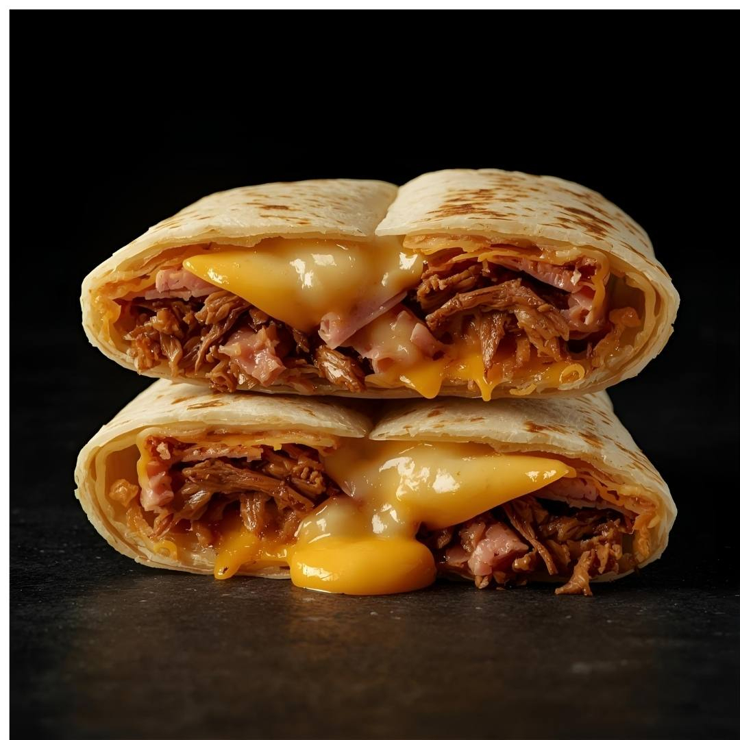 Tortilla de harina rellena de queso fundido con jamón de pierna lechuga jitomate cebolla jalapeños catsup mostaza