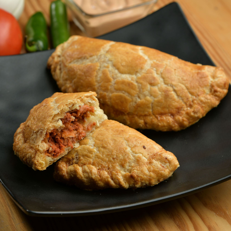 Empanada de hojaldre con queso crema y jalapeño.