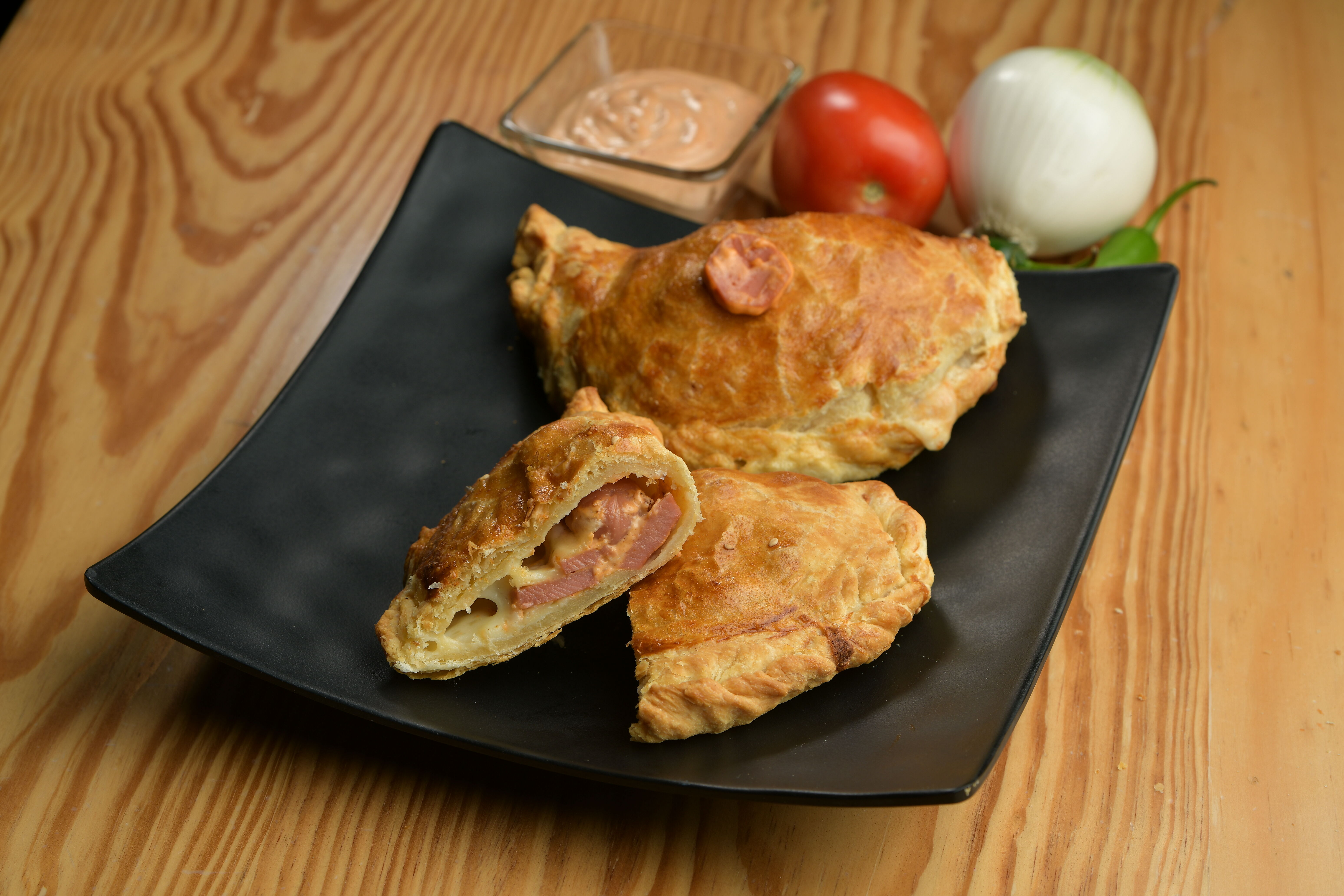 Empanada de hojaldre de pepperoni con queso mozzarella.