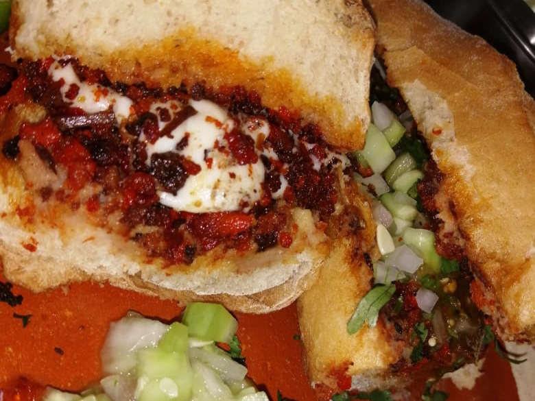 Mantequilla birria queso fundido y aderezo.