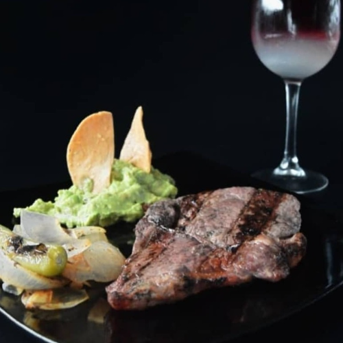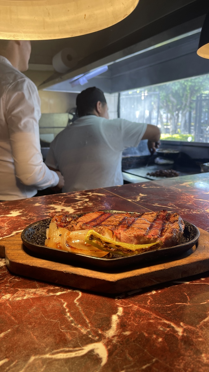 CORTE JUGOSO .350GR COCINADO AL CARBON, CON BUEN MARMOLEO, JUGOSIDAD, SABOR Y TEXTURA QUE LO CONVIERTEN EN UNO DE LOS CORTES FAVORITOS, ACOMPAÑADO DE CEBOLLITA GUISADA, CHILE TOREADO, TORTILLAS. ACOMPAÑAMIENTO A ELEGIR.