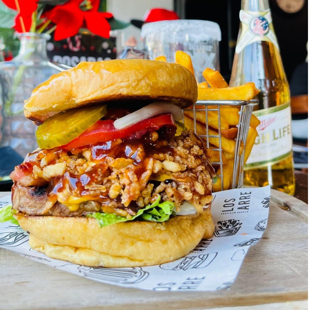 .150GR DE CARNE JUGOSA AL CARBON CORONADA CON TOCINO. QUESO AMARILLO, CEBOLLA FRITA CROCANTE Y BAÑADA EN SALSA BBQ DE LA CASA. UNA MEZCLA PERFECTA ENTRE LO SALADO, LO IRRESISTIBLE Y LO AGRIDULCE