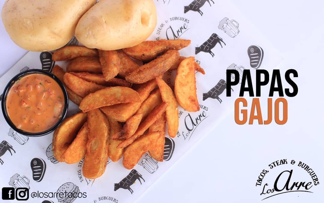 PAPAS ADOBADAS ACOMPAÑADAS CON UN DIP DE LA CASA HECHO DE ADEREZO RANCH, CHIPOTLE Y SALSA MEXICANA.