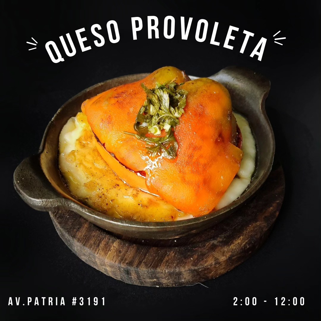 .200GRS DE QUESO ASADO A LA PLANCHA DORADITO POR FUERA SUAVE POR DENTRO, CORONADO CON JITOMATE ASADO Y MORRON, CORONADO CON UNA PISCA DE CHIMICHURRI,