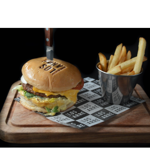 .150GR DE CARNE DE RES CON CHORIZO, TOCINO Y UNA COMBINACION DE QUESO AMARILLO Y QUESO BLANCO, HACEN UNA EXPLOSION DE SABOR EN CADA MORDIDA.