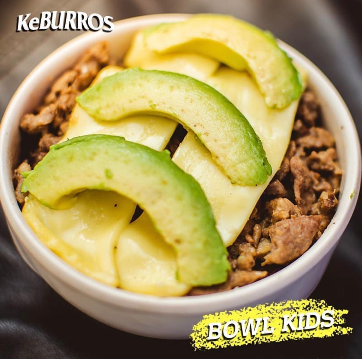 Carne a la plancha, aguacate, tocino, chile verde, frijoles, cebolla asada y queso.