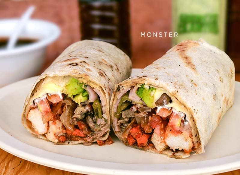 El mas chiquito de la casa, percherón en tortilla y carne sonorense, aguacate, tomate, queso y mayonesa.