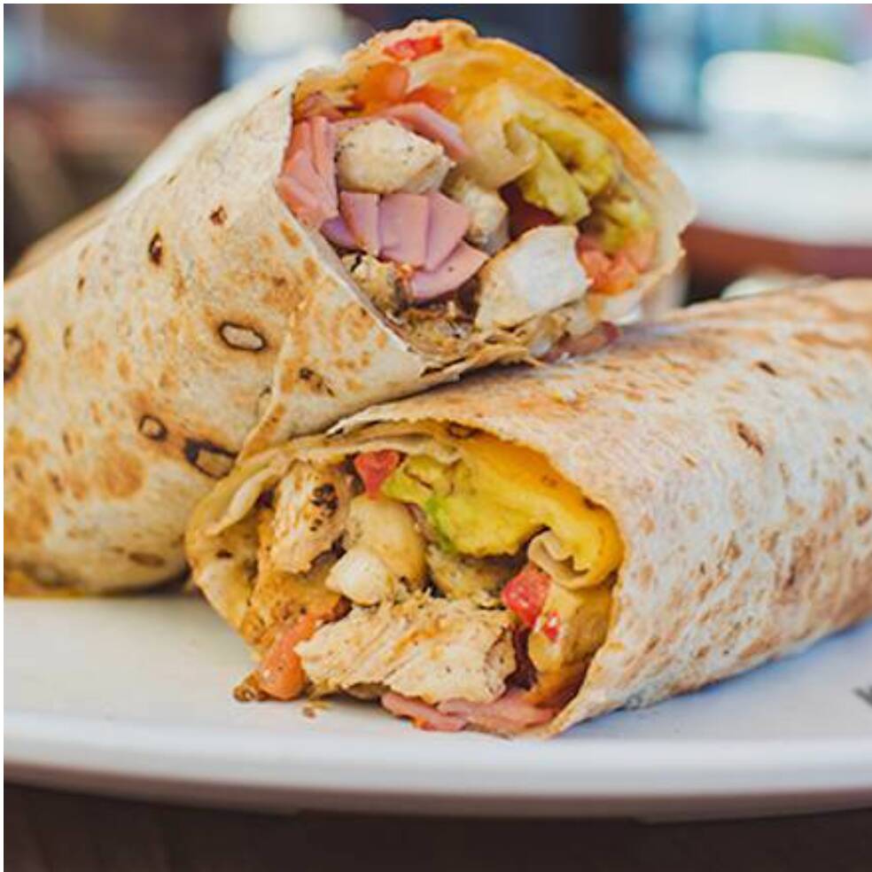 Pollo buffalo, tomate, aguacate, queso y mayonesa.