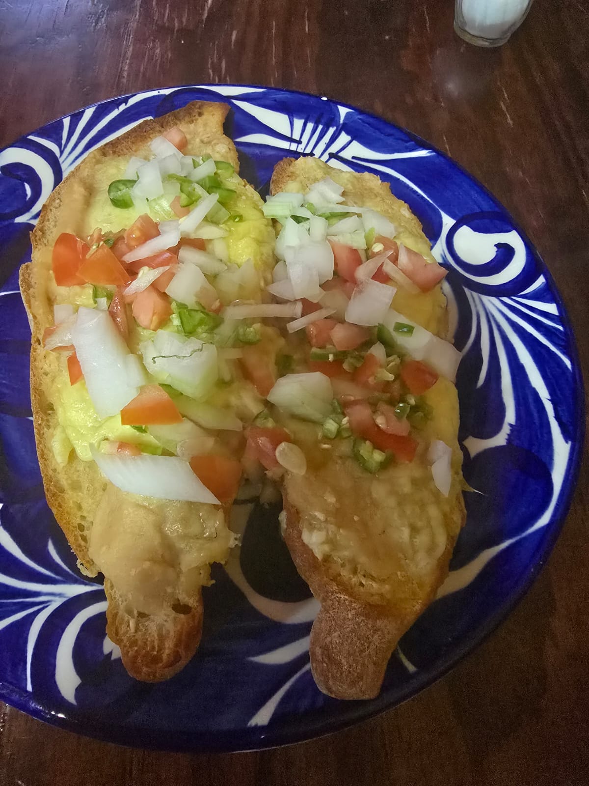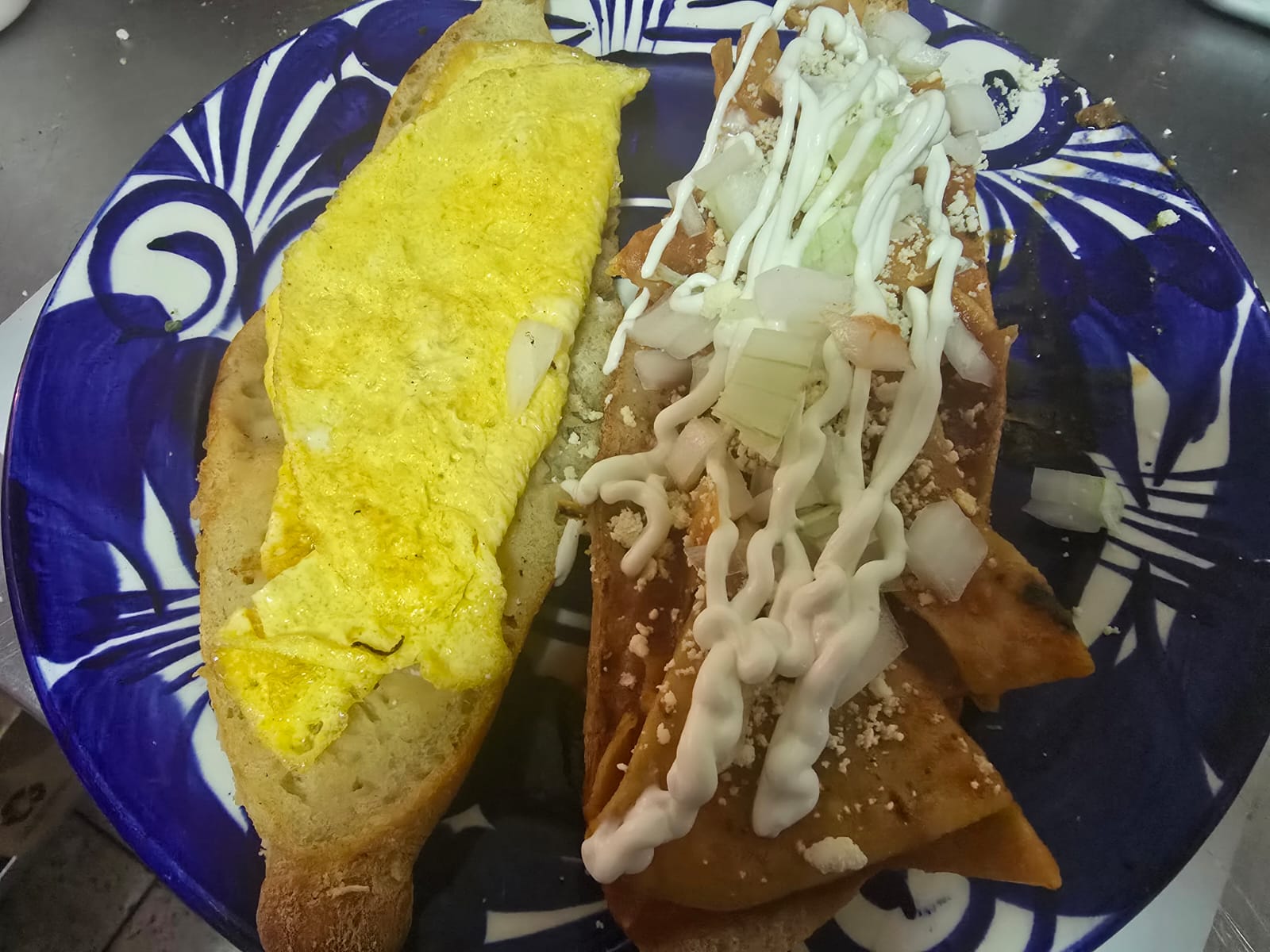 Lonche relleno de chilaquiles con salsa casera.