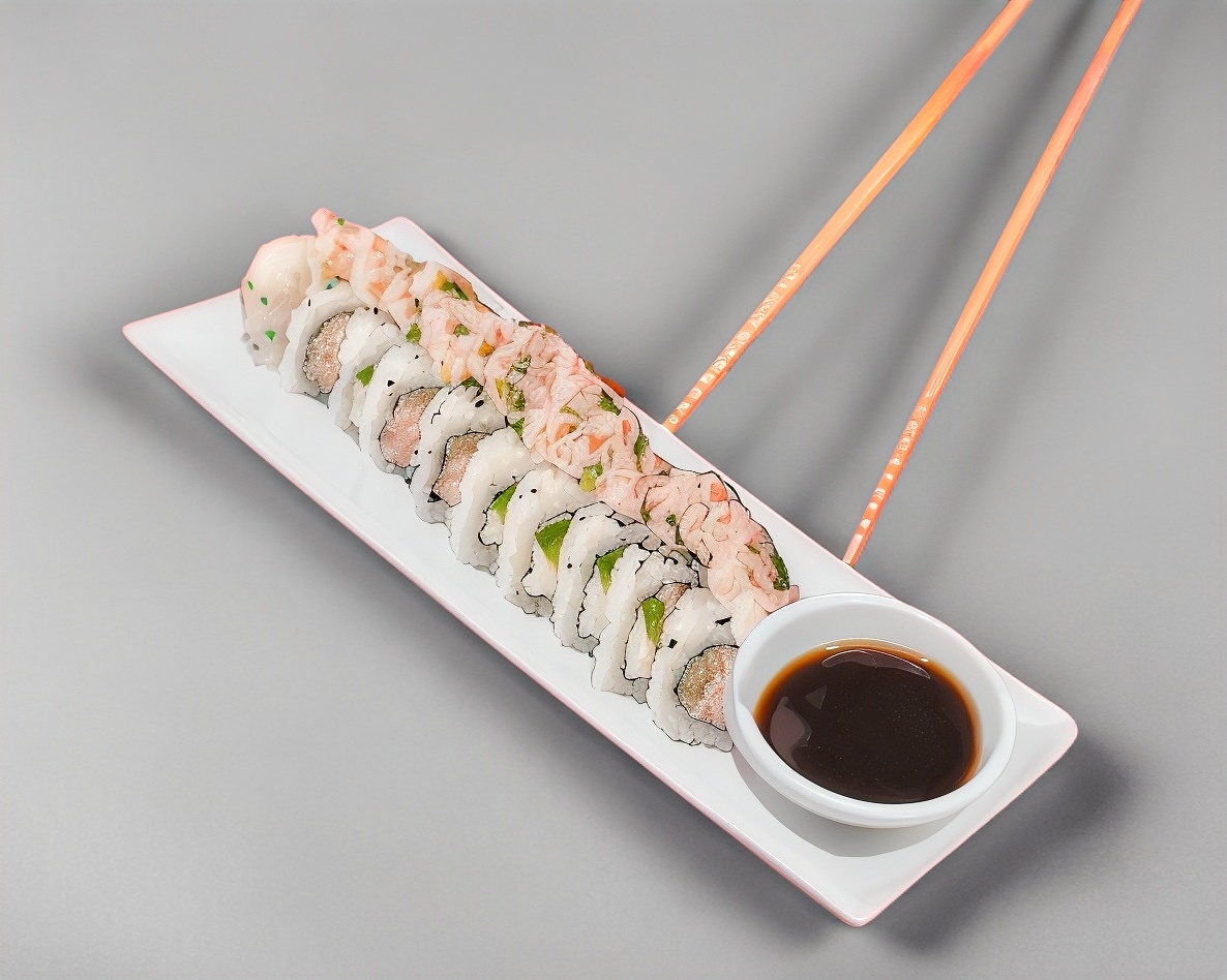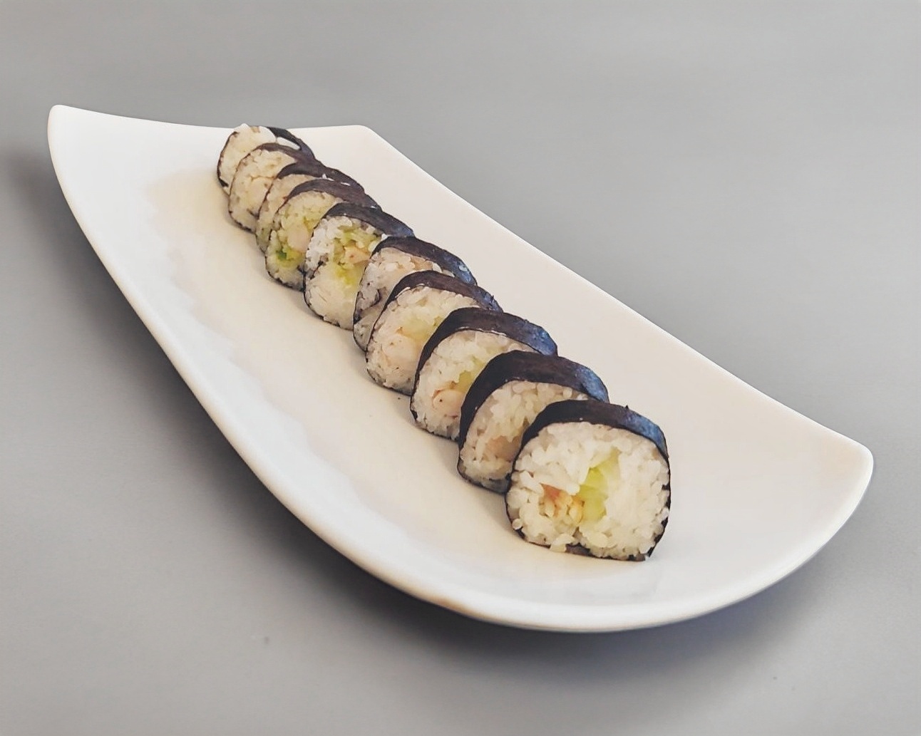 Media Porción de Sushi California, (P/D) Philadelphia, pepino, aguacate, + proteína a elegir (camarón, surimi, pollo o res).