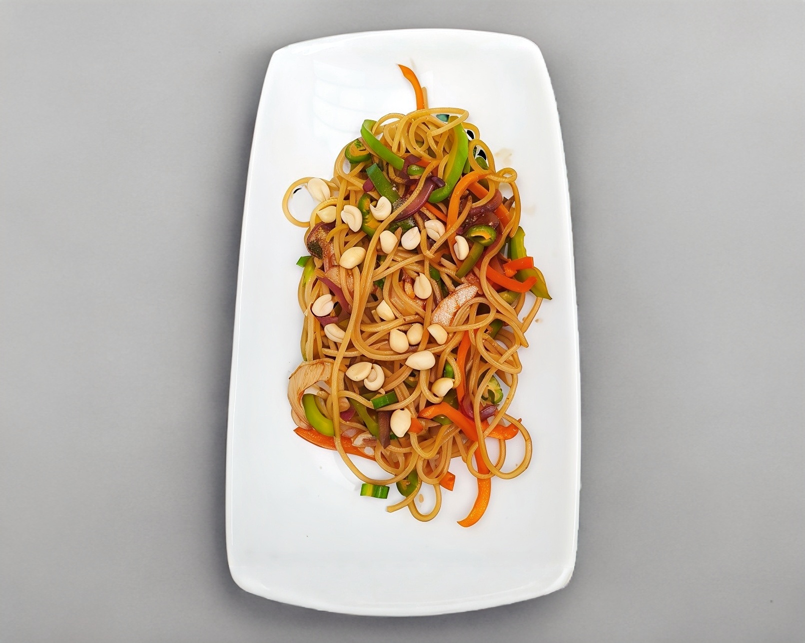 Verduras salteadas bañadas en salsa teriyaki (cebolla, apio, cacahuate y morrón), + proteína a elegir