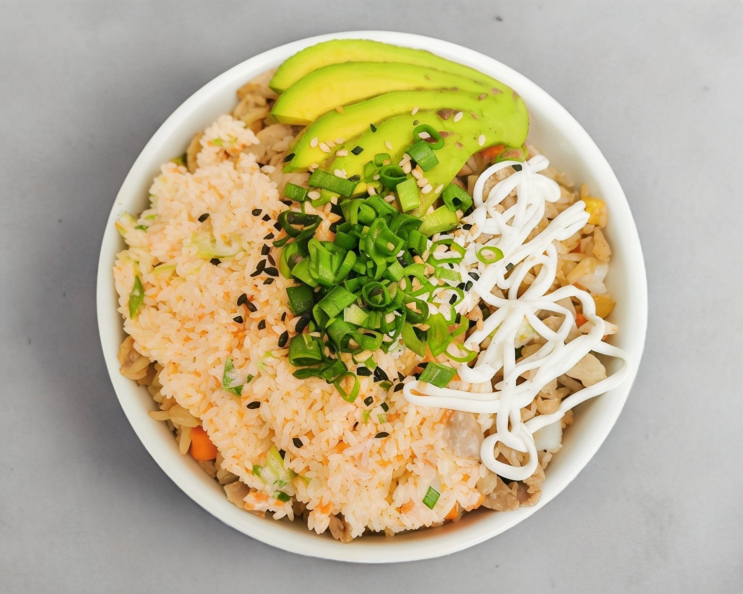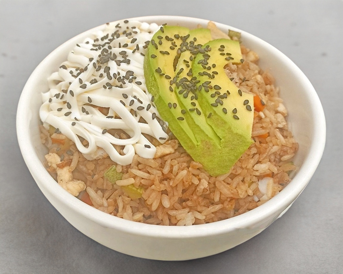 Arroz frito con verduras y proteínas a elegir, Philadelphia y aguacate.(pollo, res o camarón).