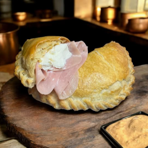 Deliciosa empanada de hojaldre rellena de jamón con queso Philadelphia. Acompañado de aderezo chipotle (Solicítalo).