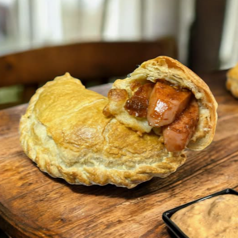 Deliciosa empanada de hojaldre rellena de salchicha adobada con chipotle. Acompañada de aderezo chipotle (Solicítalo).