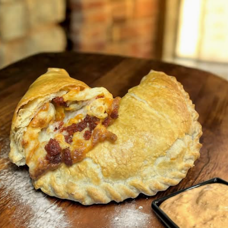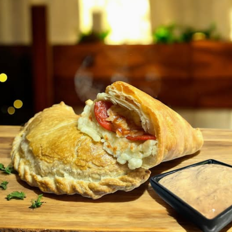 Deliciosa empanada de hojaldre rellena de queso mozzarella con un toque de puré de tomate y pepperoni. Acompañado de aderezo de chipotle (Solicítalo).