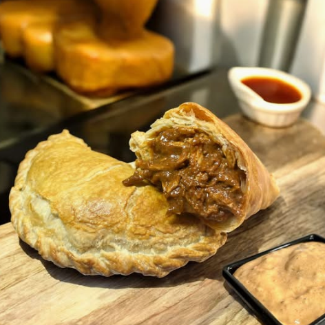 Deliciosa empanada de hojaldre rellena de mole rojo con pollo. Acompañado de aderezo chipotle (Solicítalo).
