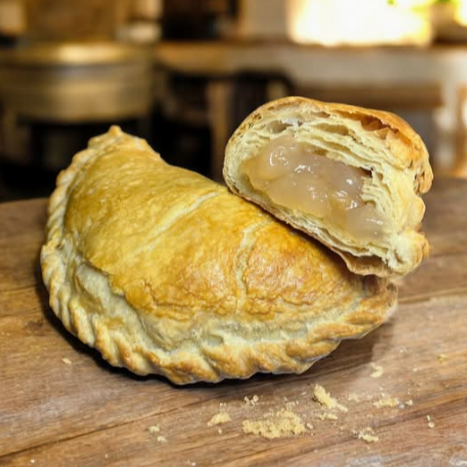 Deliciosa empanada de hojaldre rellena de mermelada de manzana.