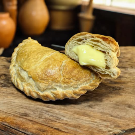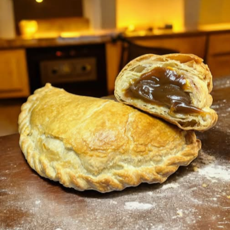 Deliciosa empanada de hojaldre rellena de crema pastelera de vainilla.