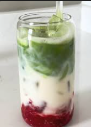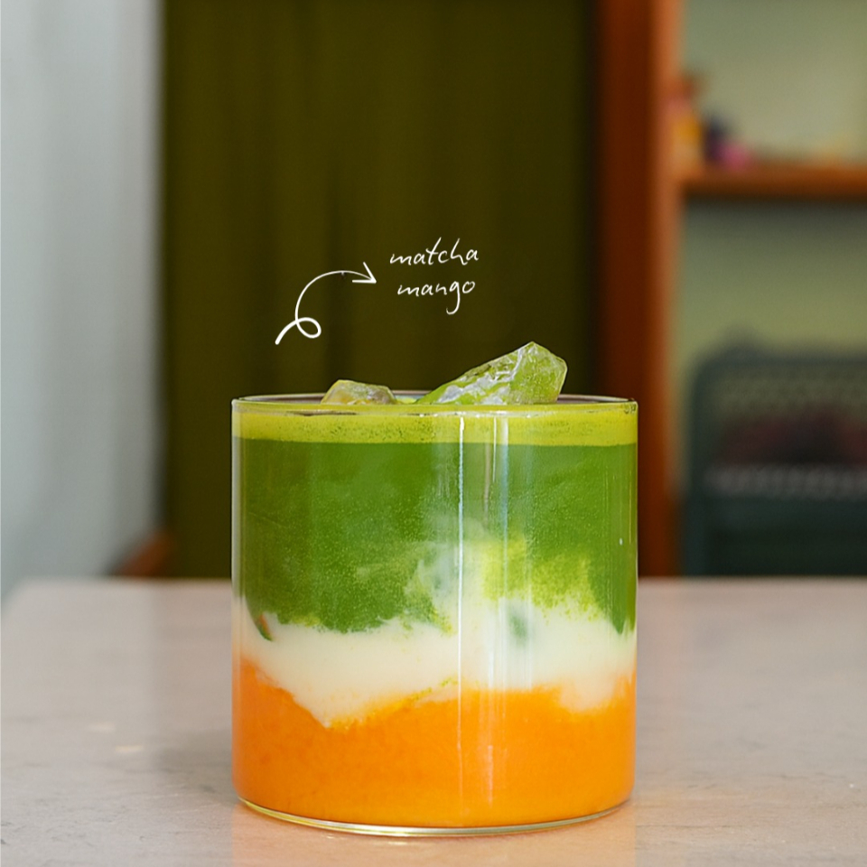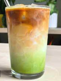 Bebida refrescante y visualmente atractiva que combina la dulzura tropical del puré de mango con el sabor terroso y la cafeína del té verde matcha, generalmente servido con leche sobre hielo.