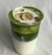 Caracterizada por combinar la base terrosa del té matcha con una capa espesa y dulce de crema de plátano.