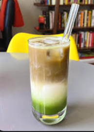 Bebida energizante que combina té matcha preparado, leche y un shot de espresso.