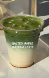 Combina matcha batido, leche, jarabe de arce y sal marina para un sabor dulce y salado.