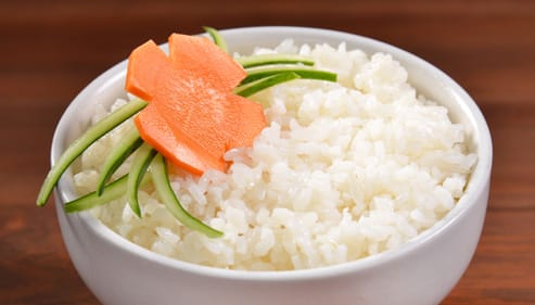 Arroz acompañado de pollo terikaki, ajonjoli.