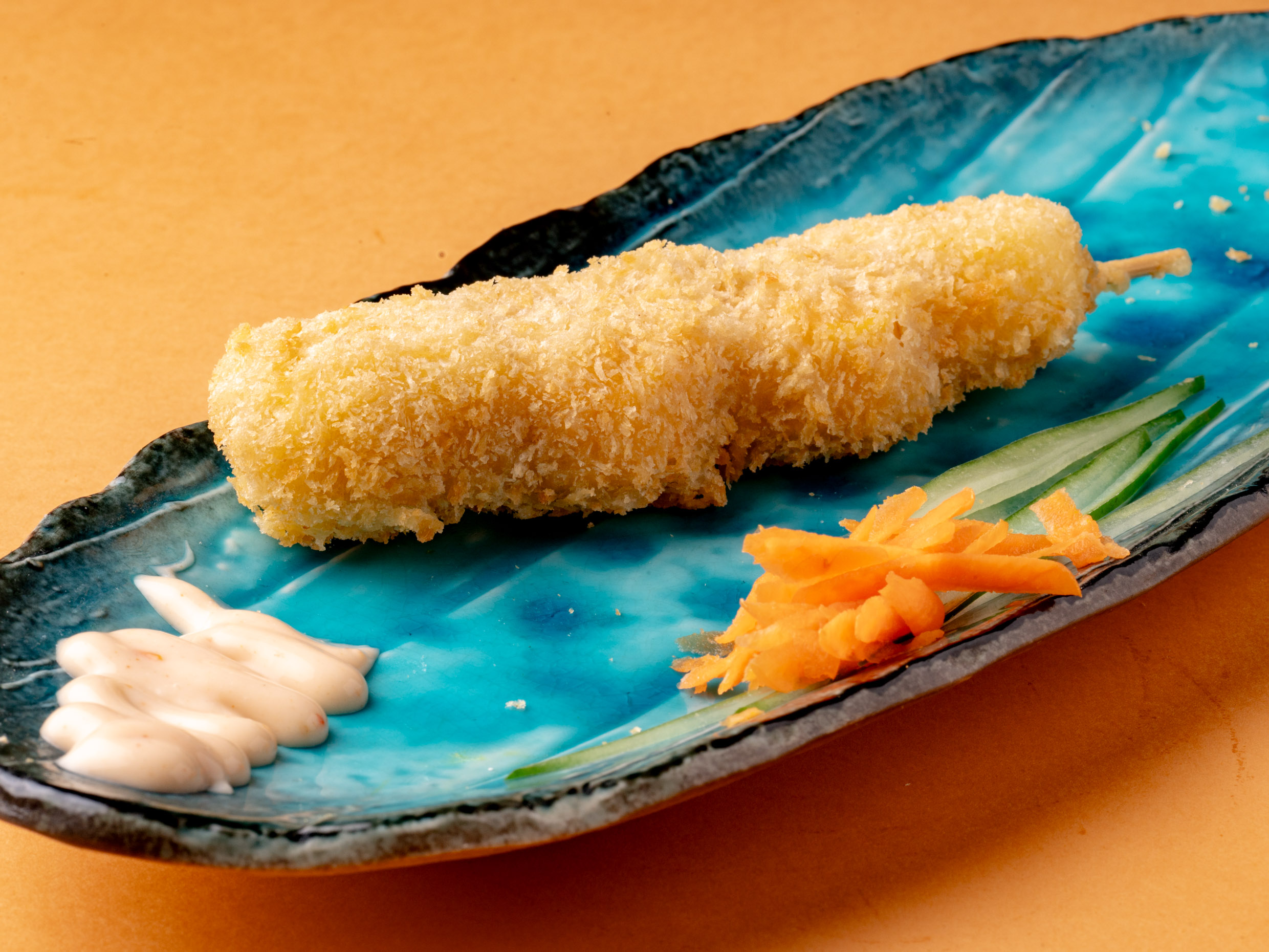 Brochetas empanizadas acompañadas con aderezo chipotle y perejil.